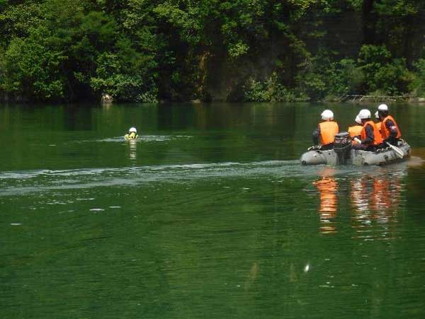 恵那警察署・恵那消防本部・県警機動隊・恵那峡遊覧船 合同水難救助訓練